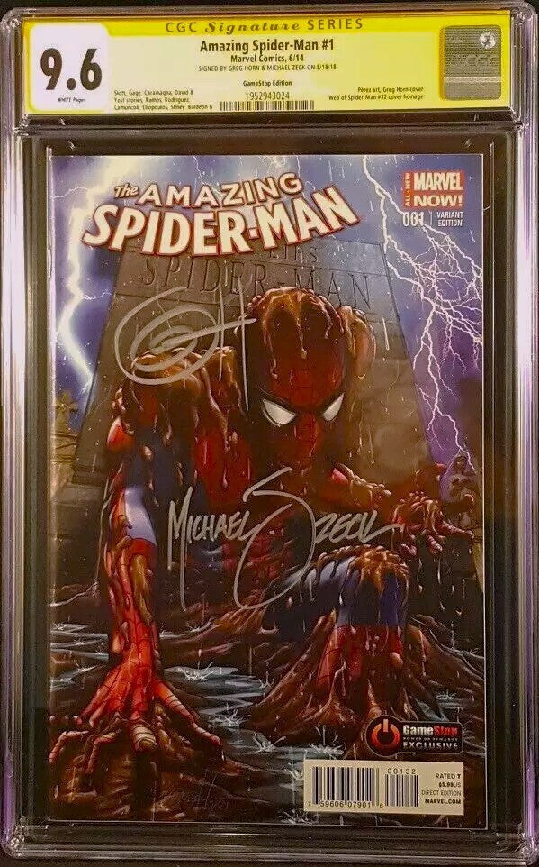 AMAZING SPIDER-MAN #1 CGC SS 9.6 NM+ GAMESTOP EXCLUSIVE VARIANT SIGNED BY GREG HORN & MIKE ZECK