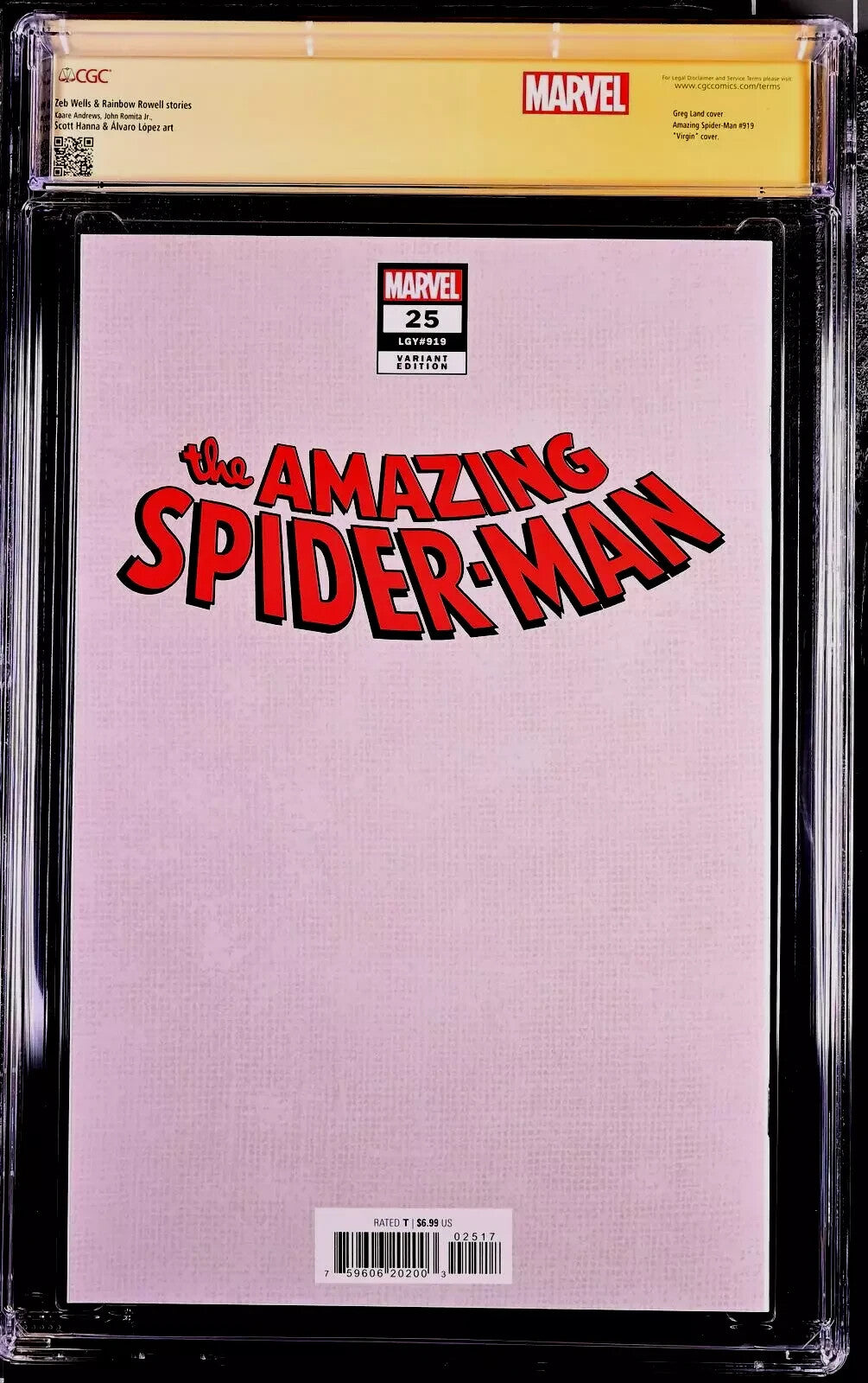 AMAZING SPIDER-MAN #25 CGC SS 9.8 GREG LAND 1:50 VIRGIN SKETCH VARIANT MARY JANE